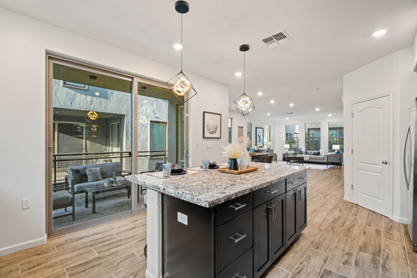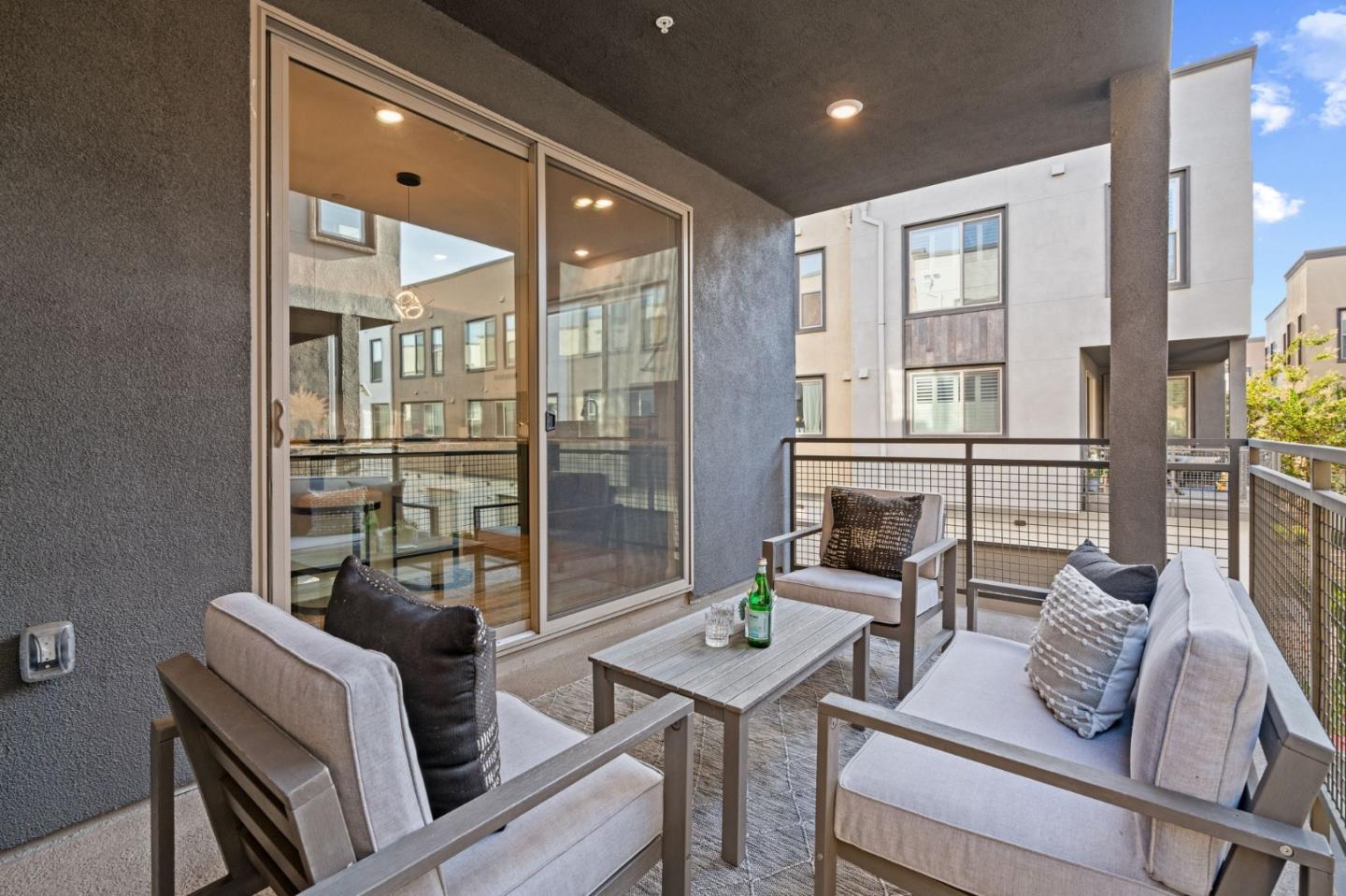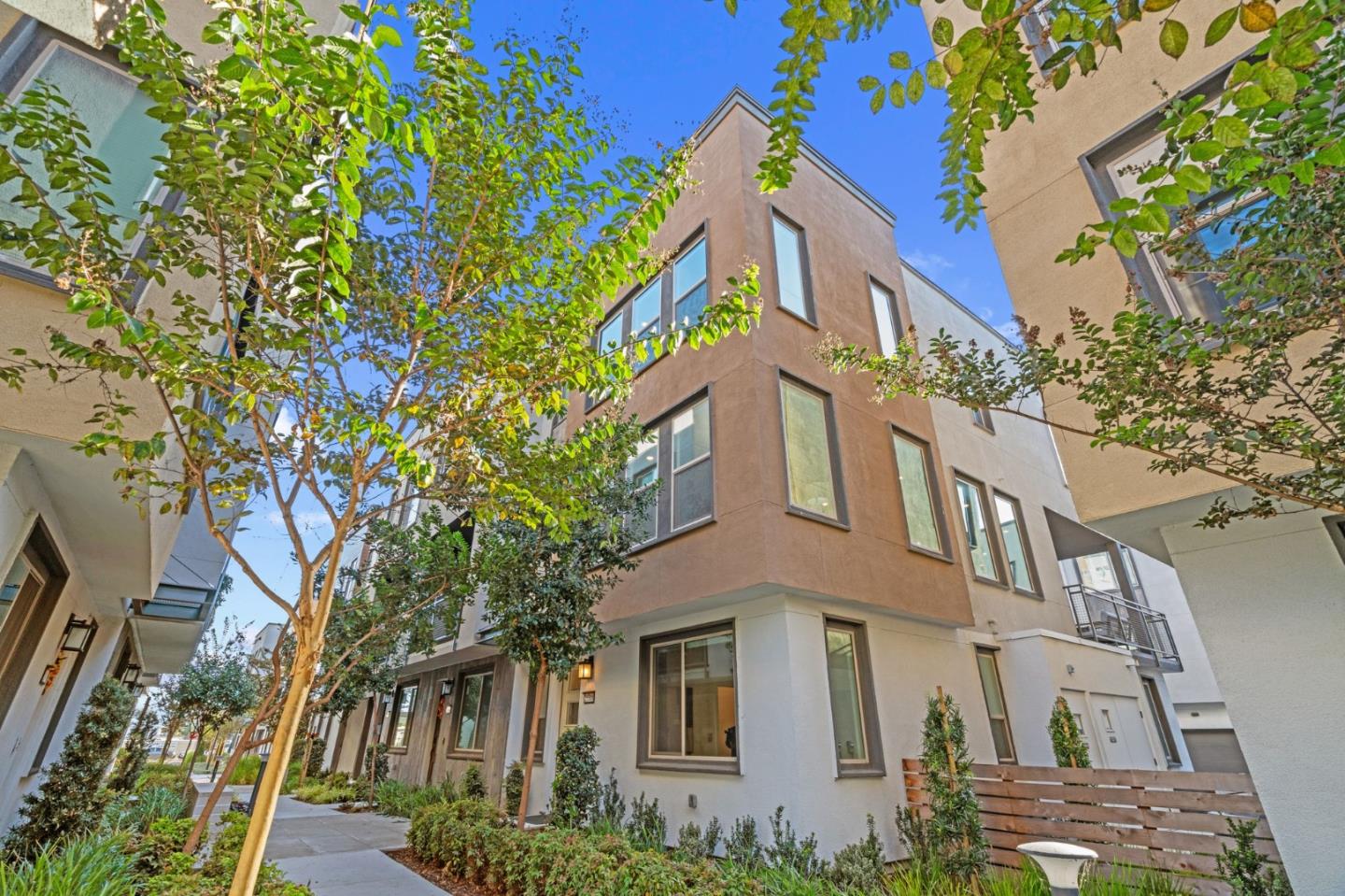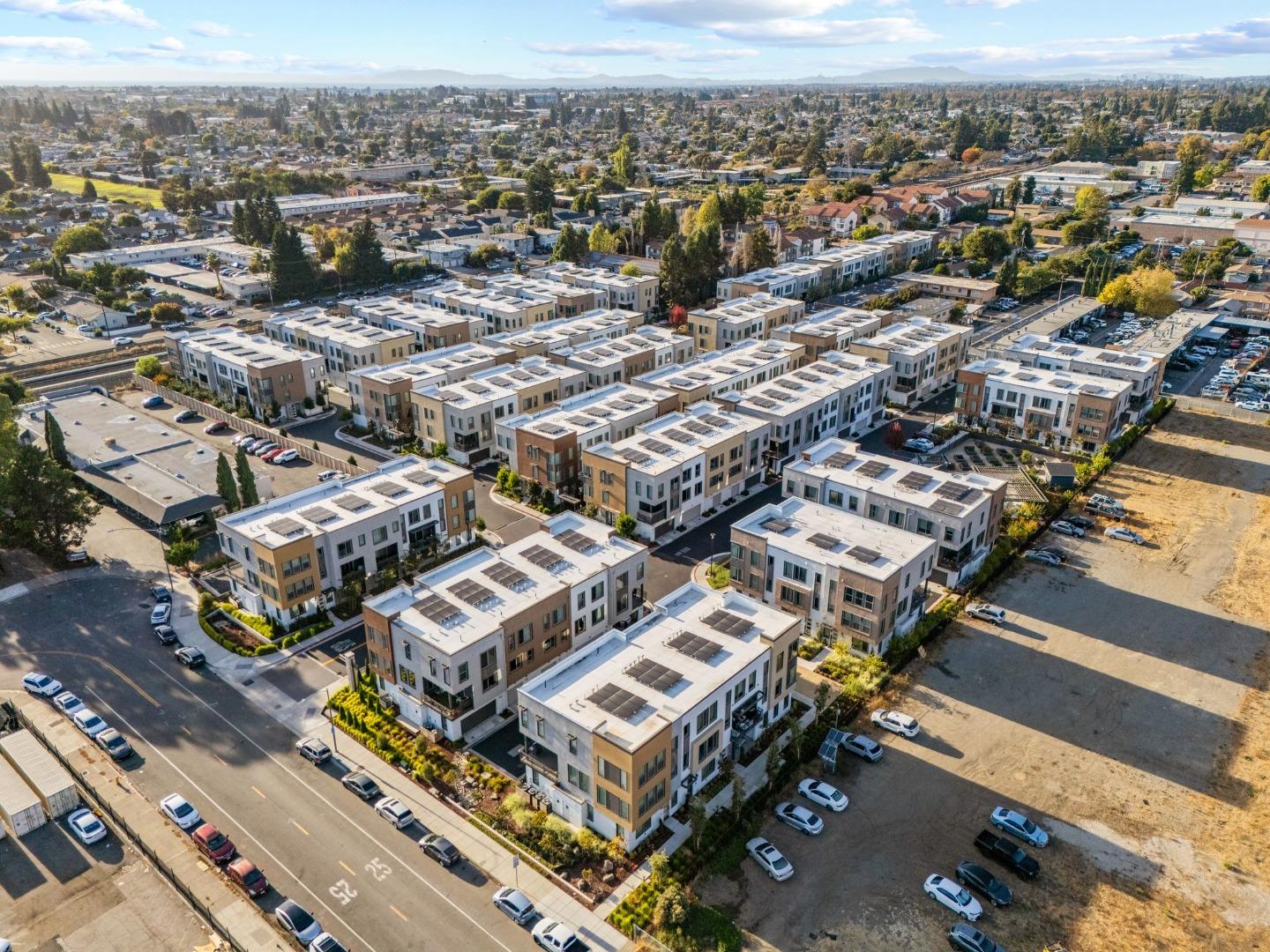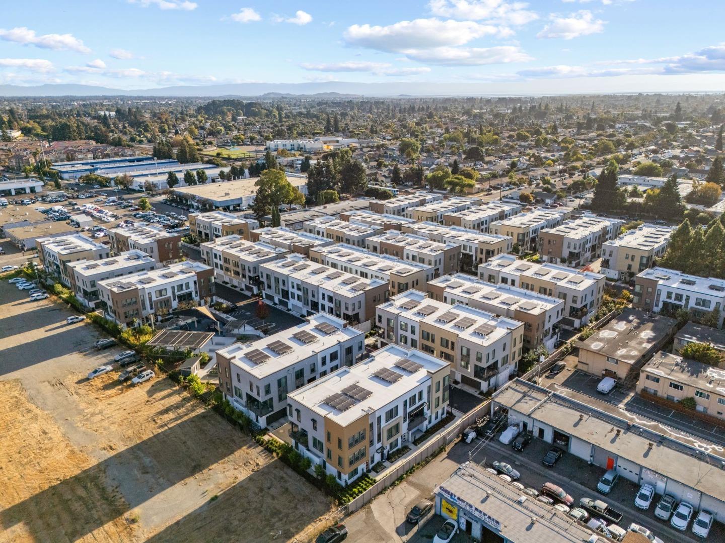 Discover contemporary luxury & convenience in this stunning corner unit townhouse-style condo, nestled in the desirable Mission Crossing community. This home exudes modern elegance while offering a thoughtful & functional design, perfect for your everyday modern lifestyle. The first level welcomes guests w/ a private en-suite bedroom, ideal for accommodating visitors or serving as a dedicated home office. The main floor, where the open-concept layout creates a seamless flow for entertaining. A gourmet kitchen, featuring an expansive center island, provides abundant counter space & storage. Step onto a private balcony, a perfect spot for morning coffee or evening gatherings. A convenient half bath completes this level w/ ease & sophistication. The top floor serves as a private retreat, where a primary suite awaits w/ a spa-like en-suite bath. Two additional bedrooms share a well-appointed hall bath, while a dedicated laundry room adds practical convenience. This home also includes a spacious two-car side-by-side garage w/ an electric vehicle charger. Situated near Hayward's best amenities, residents will enjoy proximity to diverse restaurants, shopping, and public transportation. The location provides easy access to the 880/92 freeways, the San Mateo Bridge & downtown Hayward.