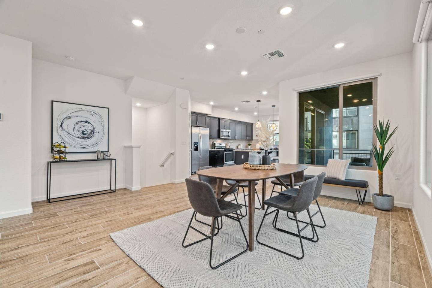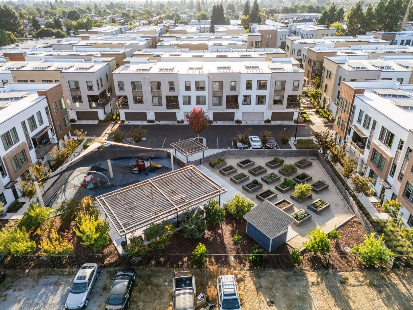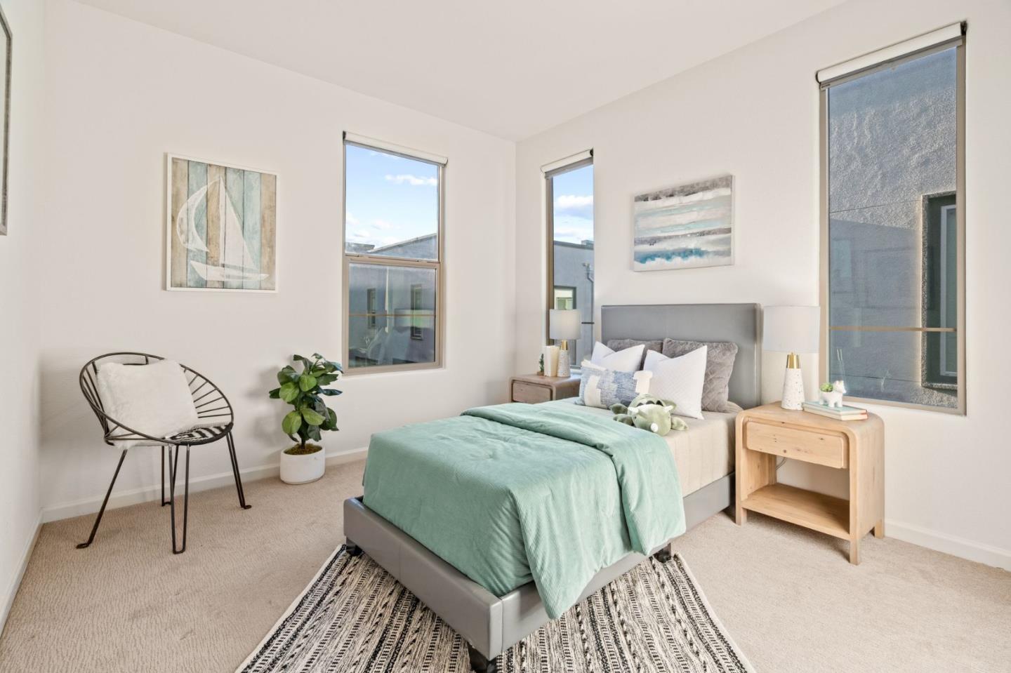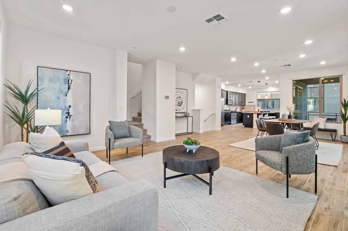 Discover contemporary luxury & convenience in this stunning corner unit townhouse-style condo, nestled in the desirable Mission Crossing community. This home exudes modern elegance while offering a thoughtful & functional design, perfect for your everyday modern lifestyle. The first level welcomes guests w/ a private en-suite bedroom, ideal for accommodating visitors or serving as a dedicated home office. The main floor, where the open-concept layout creates a seamless flow for entertaining. A gourmet kitchen, featuring an expansive center island, provides abundant counter space & storage. Step onto a private balcony, a perfect spot for morning coffee or evening gatherings. A convenient half bath completes this level w/ ease & sophistication. The top floor serves as a private retreat, where a primary suite awaits w/ a spa-like en-suite bath. Two additional bedrooms share a well-appointed hall bath, while a dedicated laundry room adds practical convenience. This home also includes a spacious two-car side-by-side garage w/ an electric vehicle charger. Situated near Hayward's best amenities, residents will enjoy proximity to diverse restaurants, shopping, and public transportation. The location provides easy access to the 880/92 freeways, the San Mateo Bridge & downtown Hayward.