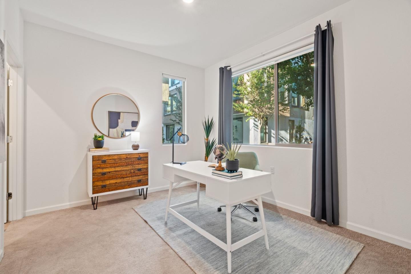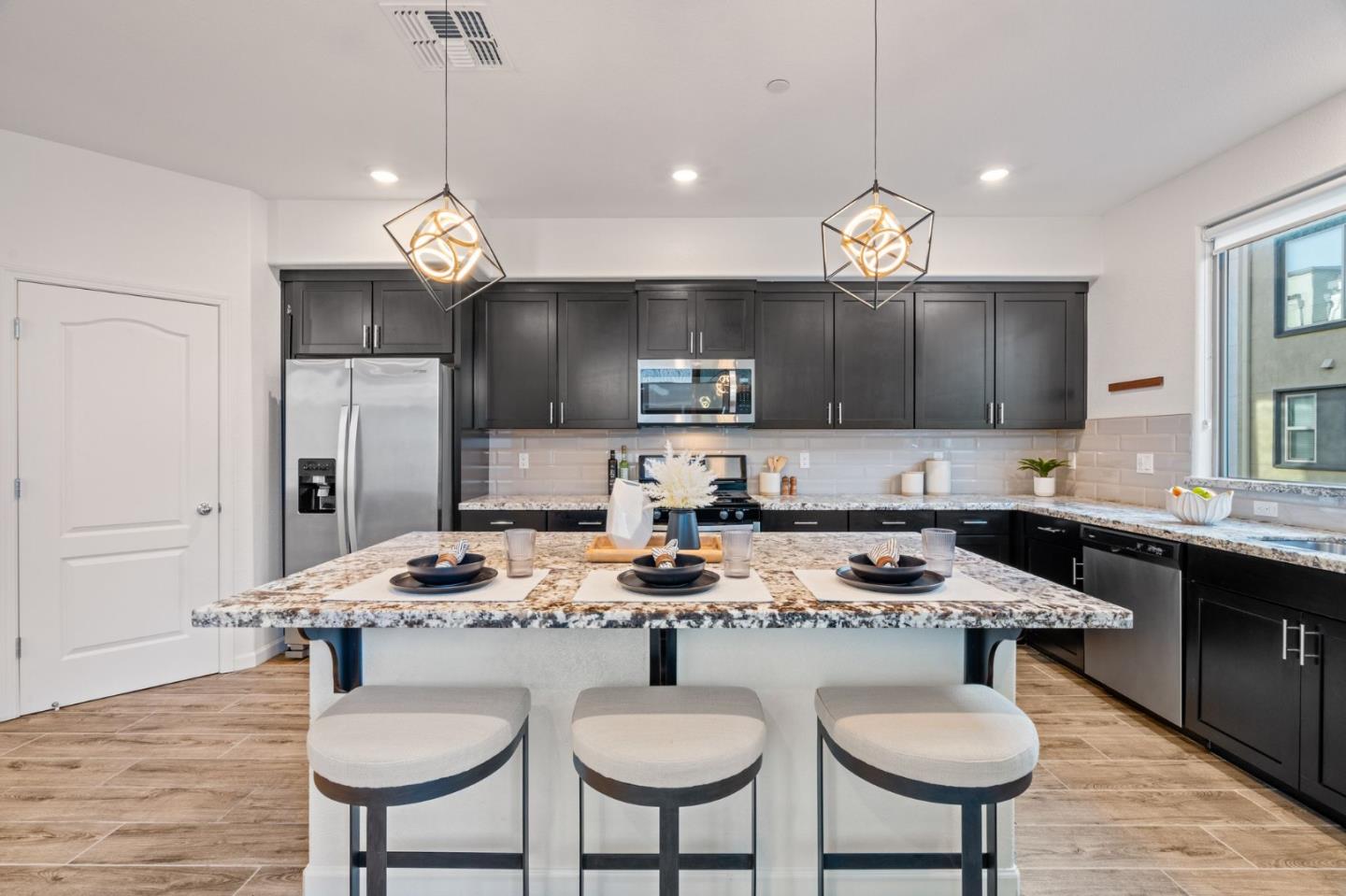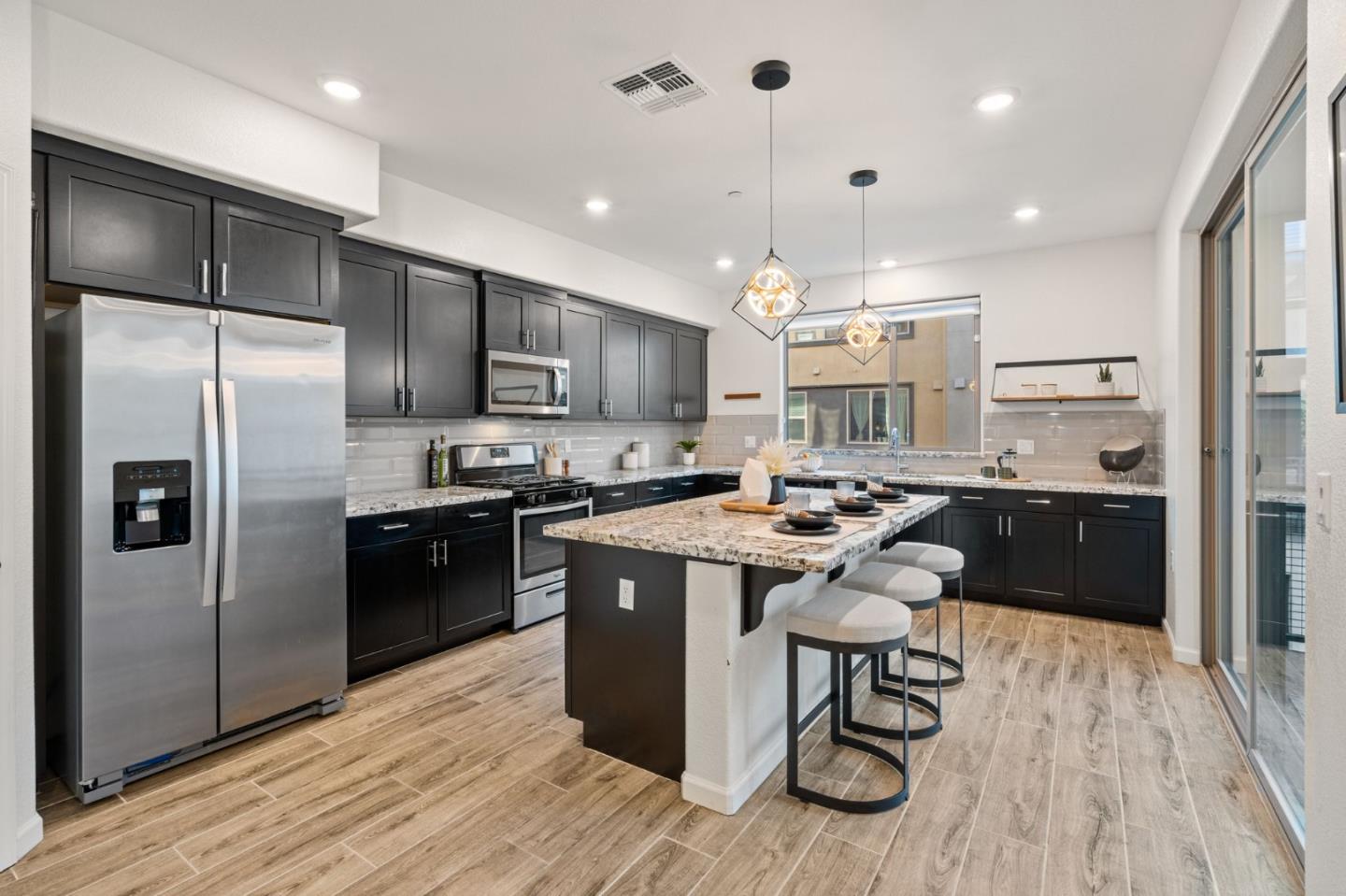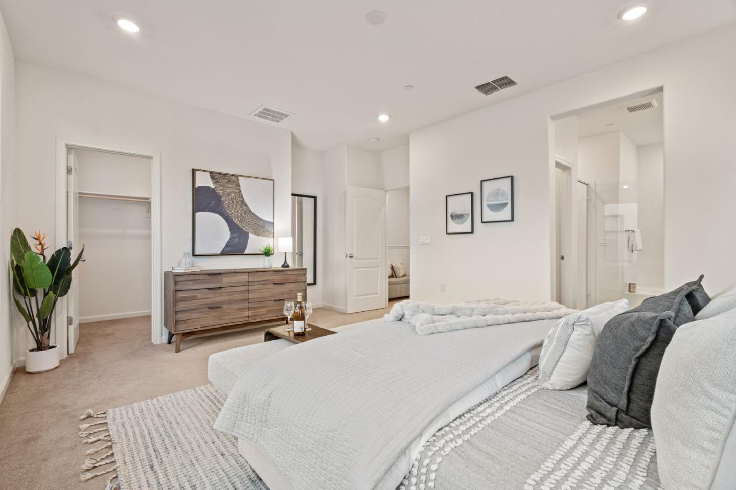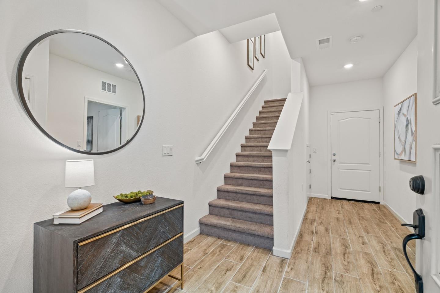 Discover contemporary luxury & convenience in this stunning corner unit townhouse-style condo, nestled in the desirable Mission Crossing community. This home exudes modern elegance while offering a thoughtful & functional design, perfect for your everyday modern lifestyle. The first level welcomes guests w/ a private en-suite bedroom, ideal for accommodating visitors or serving as a dedicated home office. The main floor, where the open-concept layout creates a seamless flow for entertaining. A gourmet kitchen, featuring an expansive center island, provides abundant counter space & storage. Step onto a private balcony, a perfect spot for morning coffee or evening gatherings. A convenient half bath completes this level w/ ease & sophistication. The top floor serves as a private retreat, where a primary suite awaits w/ a spa-like en-suite bath. Two additional bedrooms share a well-appointed hall bath, while a dedicated laundry room adds practical convenience. This home also includes a spacious two-car side-by-side garage w/ an electric vehicle charger. Situated near Hayward's best amenities, residents will enjoy proximity to diverse restaurants, shopping, and public transportation. The location provides easy access to the 880/92 freeways, the San Mateo Bridge & downtown Hayward.