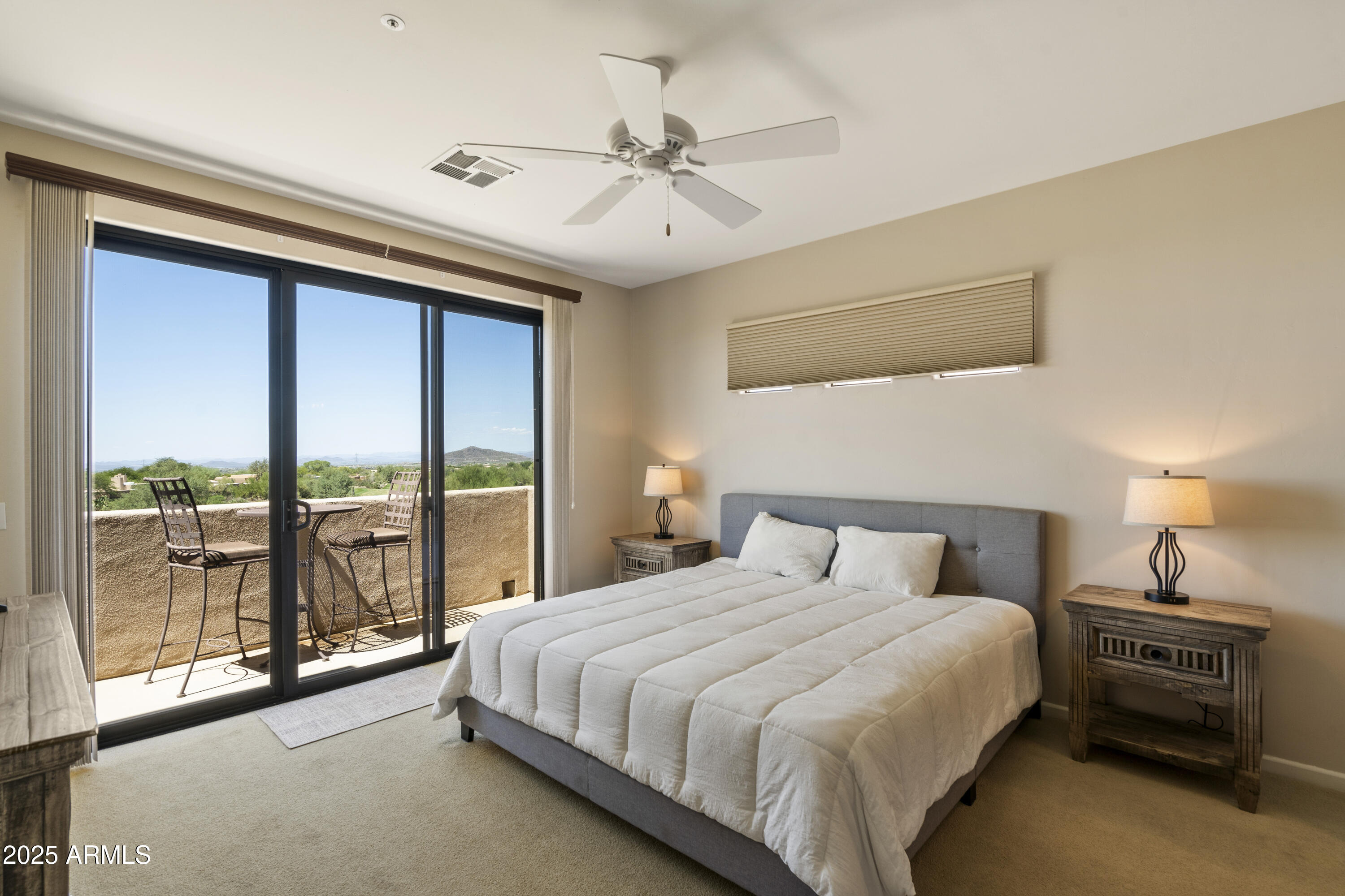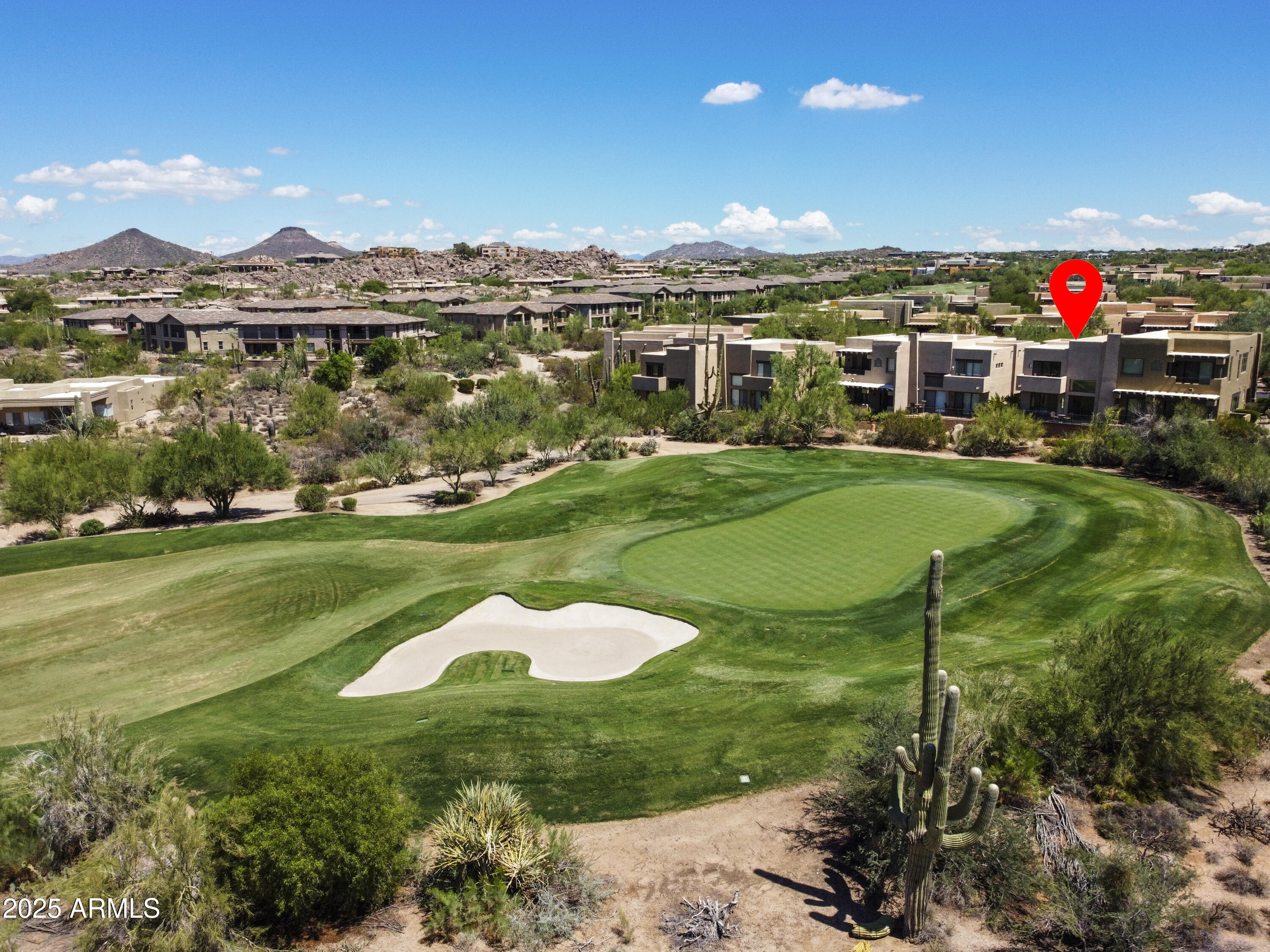 A RARE OPPORTUNITY to own captivating $1Million VIEWS for an UNBEATABLE PRICE!! Now is the perfect time to secure your winter escape and savor relaxing leisure. Situated on ONE OF THE MOST PREMIER GOLF COURSE LOTS in the prestigious On The Green at Troon North, this TURN KEY, FULLY FURNISHED townhome offers effortless luxury and UNOBSTRUCTED VIEWS of the 8th hole of the Monument Course, SURROUNDING MOUNTAINS, and TWINKLING CITY LIGHTS. Perfectly positioned for privacy and scenery, the residence lives like a stand alone home without the hassle & is designed to maximize the breathtaking vistas from every angle. The home features A RARE 3 spacious primary suite arrangement (including one on the main level), each with walk-in closets and private patios, showcasing the dramatic views. Expansive windows, soaring ceilings, and an open-concept floor plan fill the light-drenched living spaces with natural beauty, ideal for entertaining or simply unwinding in style. Designed for a true lock-and-leave lifestyle, this low-maintenance home is move-in ready! Multiple patios and balconies offer seamless indoor-outdoor living, providing the ultimate setting to enjoy year-round desert beauty. Community amenities elevate the experience with championship golf, a sparkling pool and spa, a fitness center, and nearby scenic trails, all delivering a resort-like, North Scottsdale lifestyle just outside your door. Whether you seek a primary residence, a seasonal retreat, or an investment opportunity, this fully furnished, view-driven home is the ultimate desert escape.